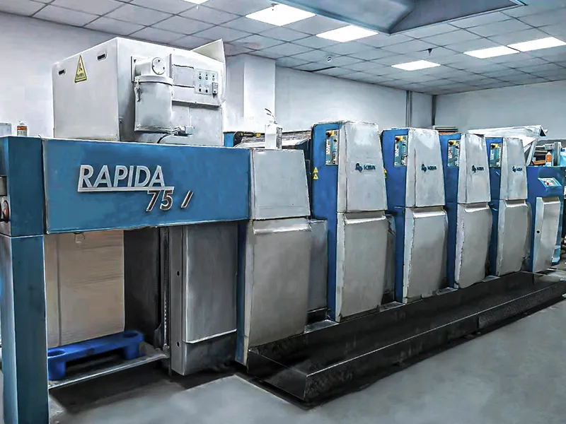 ■मशीनरी:उन्नत मशीनरी से सुसज्जित, जिसमें जर्मनी निर्मित केबीए रैपिडा 75ई (6-रंग) और केबीए रैपिडा 75 (4-रंग) प्रिंटिंग प्रेस के साथ-साथ क्रीज़िंग, डाई-कटिंग और अन्य सहायक उपकरण शामिल हैं।